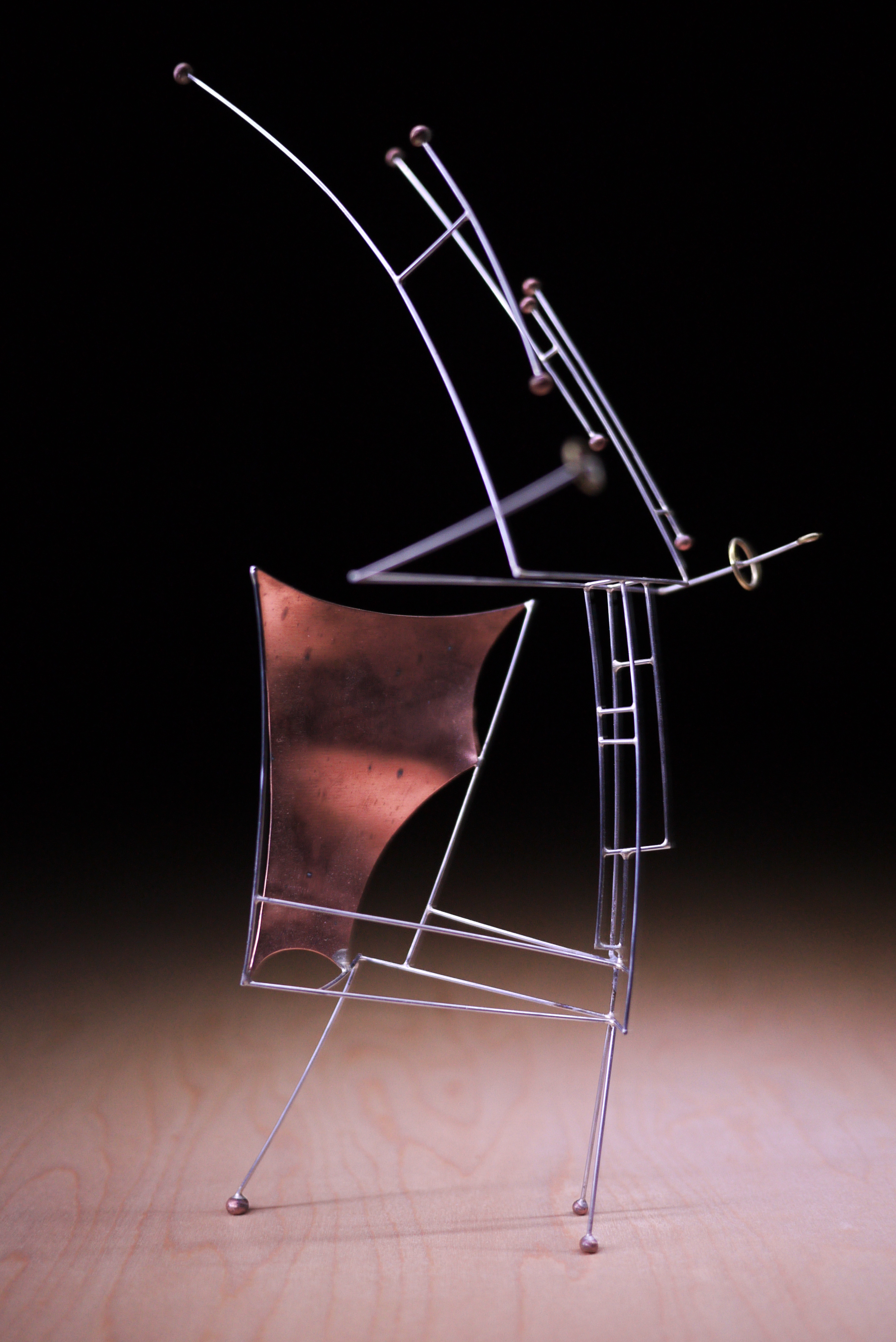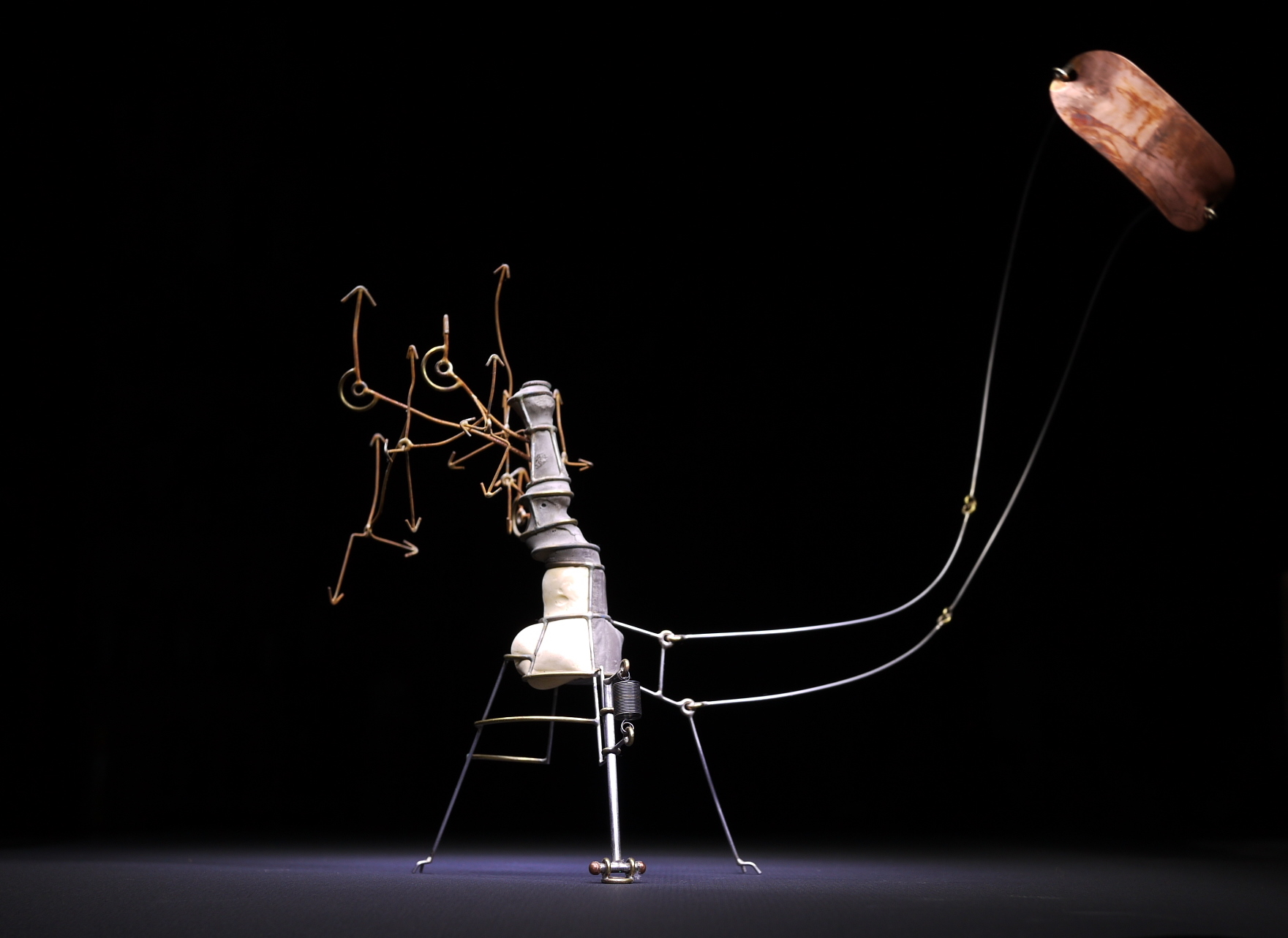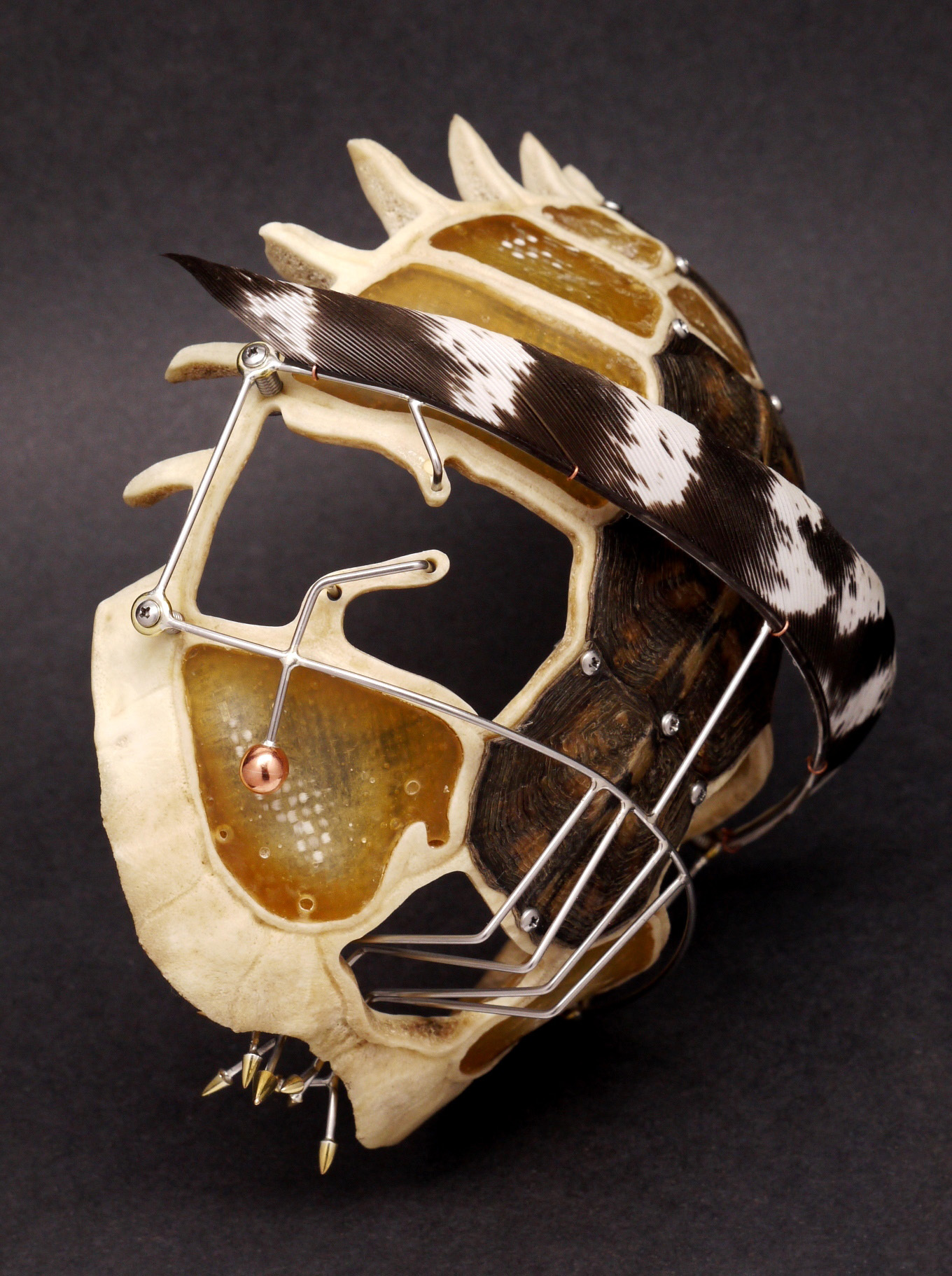 Stainless Steel, Copper, Brass,Fiberglass, Epoxy, Turtle Shell, Turkey Feather. H. 5 in (finished in 2019)