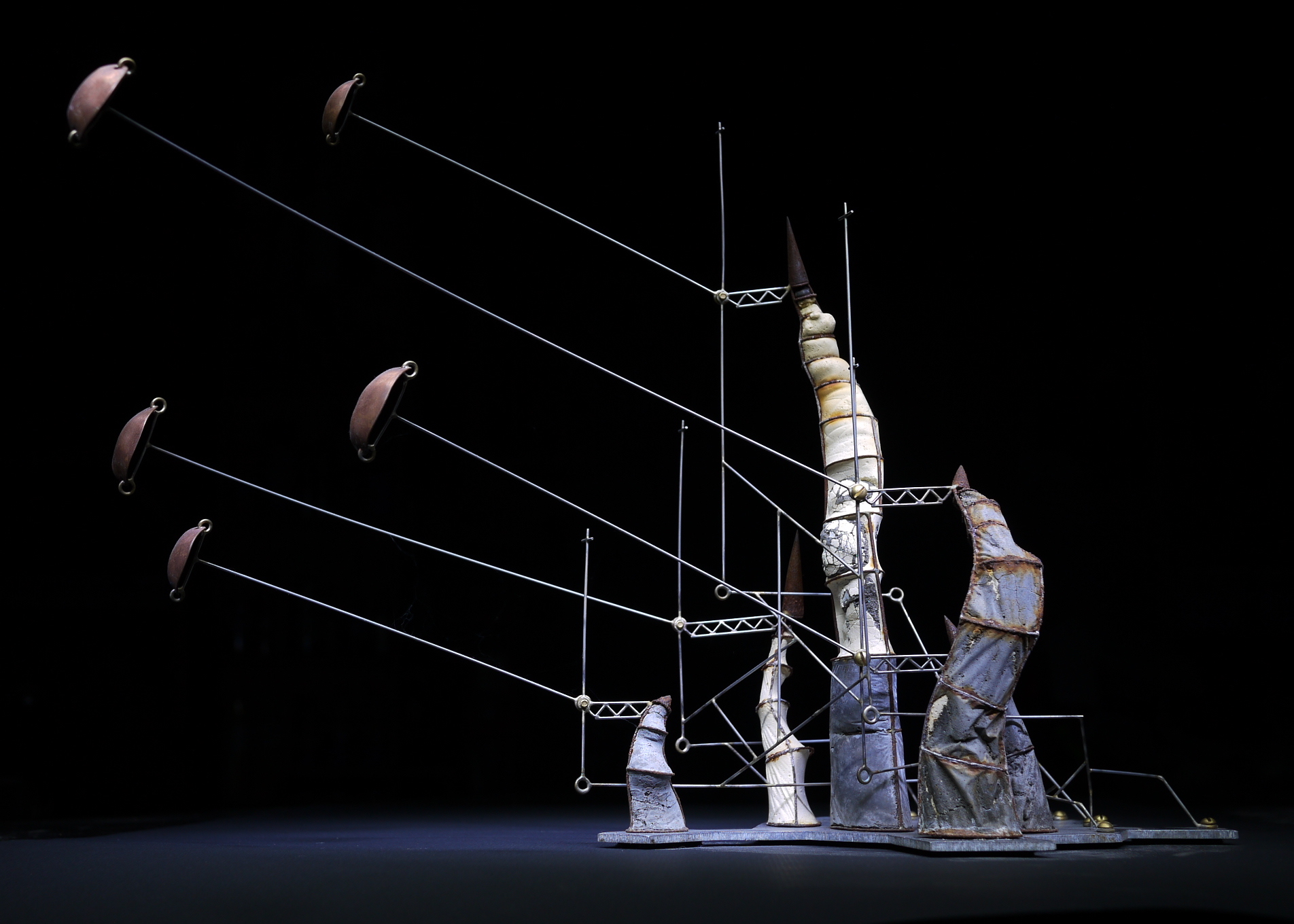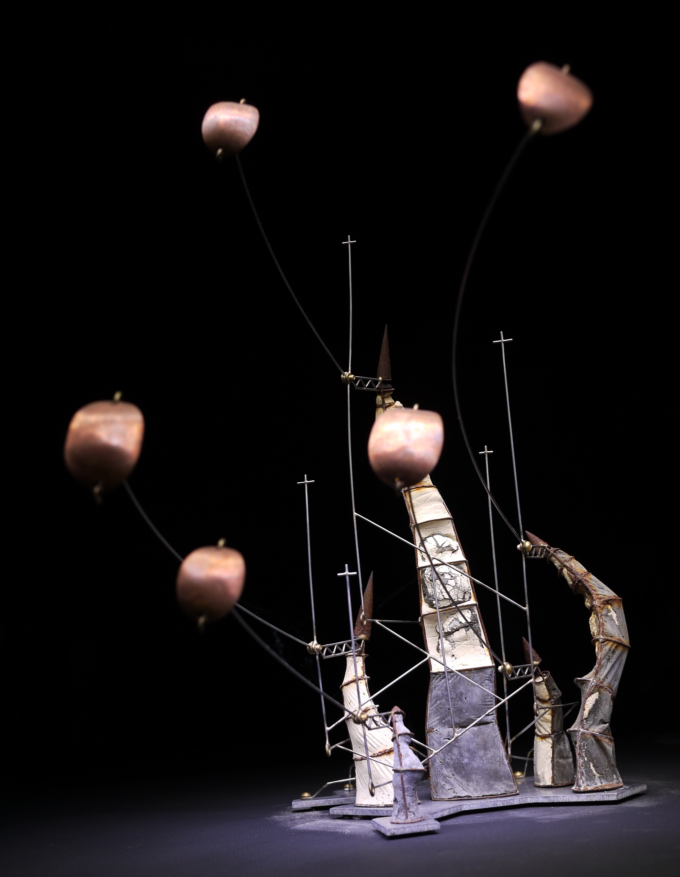 Stainless Steel, Brass, Copper, Cement. H. 14 in